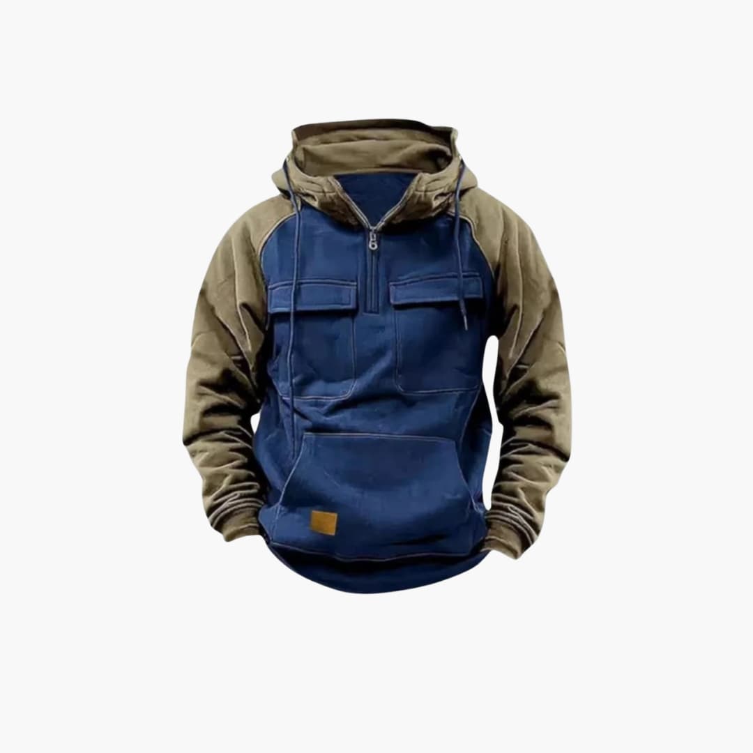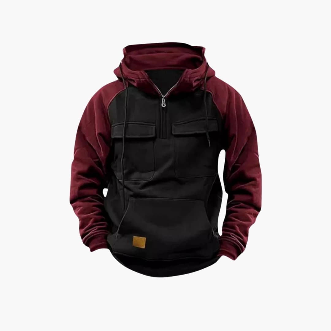 Hoodie för män med bröstfickor och kvartslång dragkedja