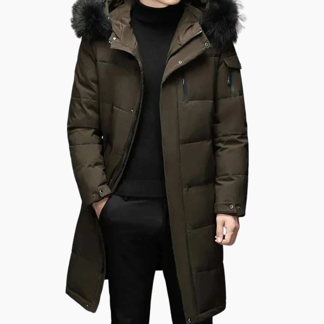 Herr Parka Jacka med Dragkedja och Fuskpäls Huva