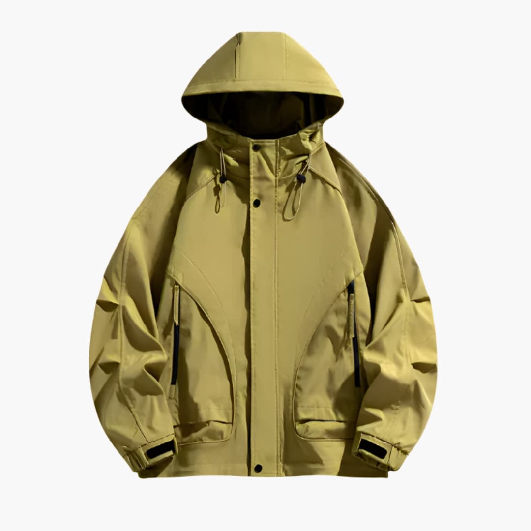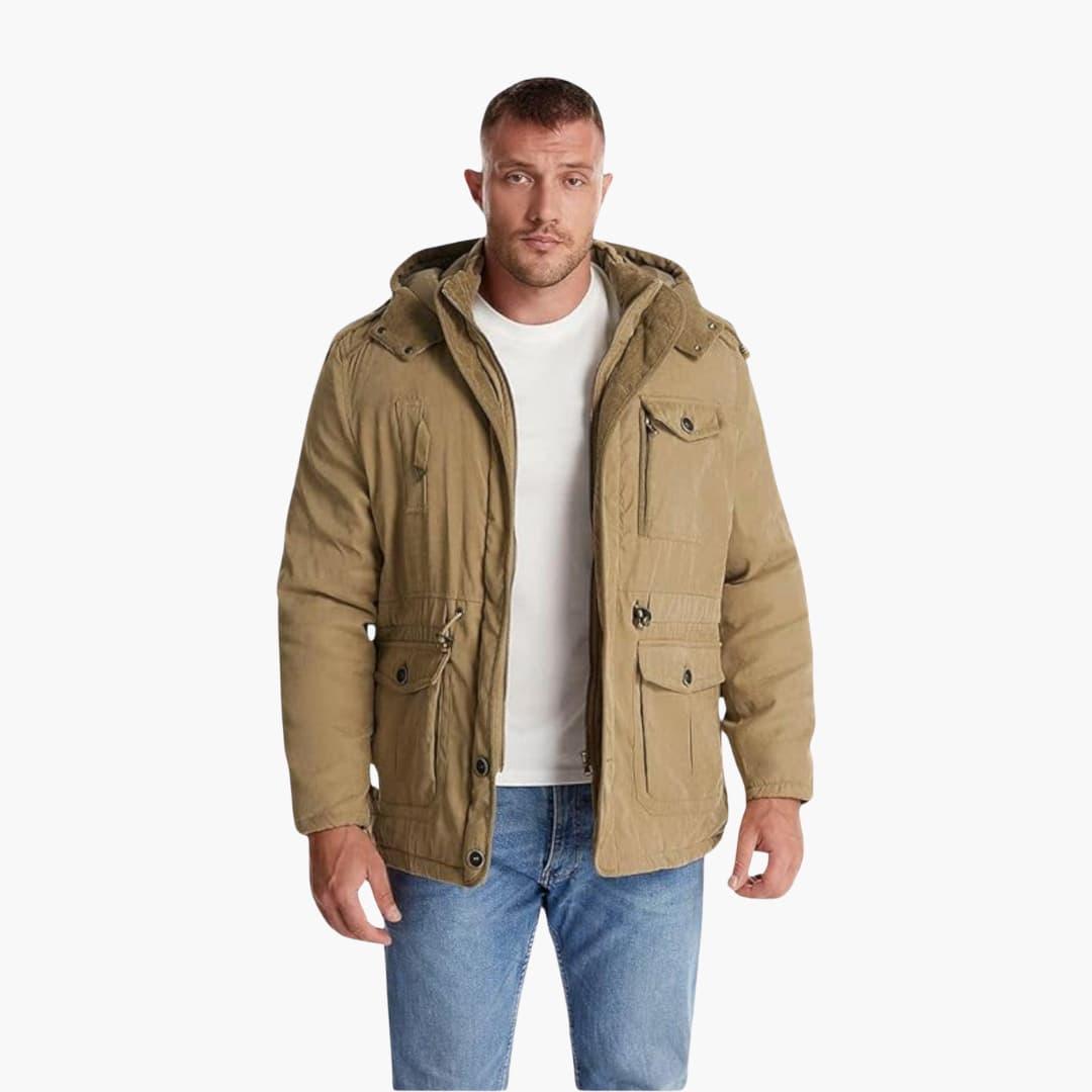 Herrjacka för utomhusbruk med justerbar huva och fickor med dragkedja