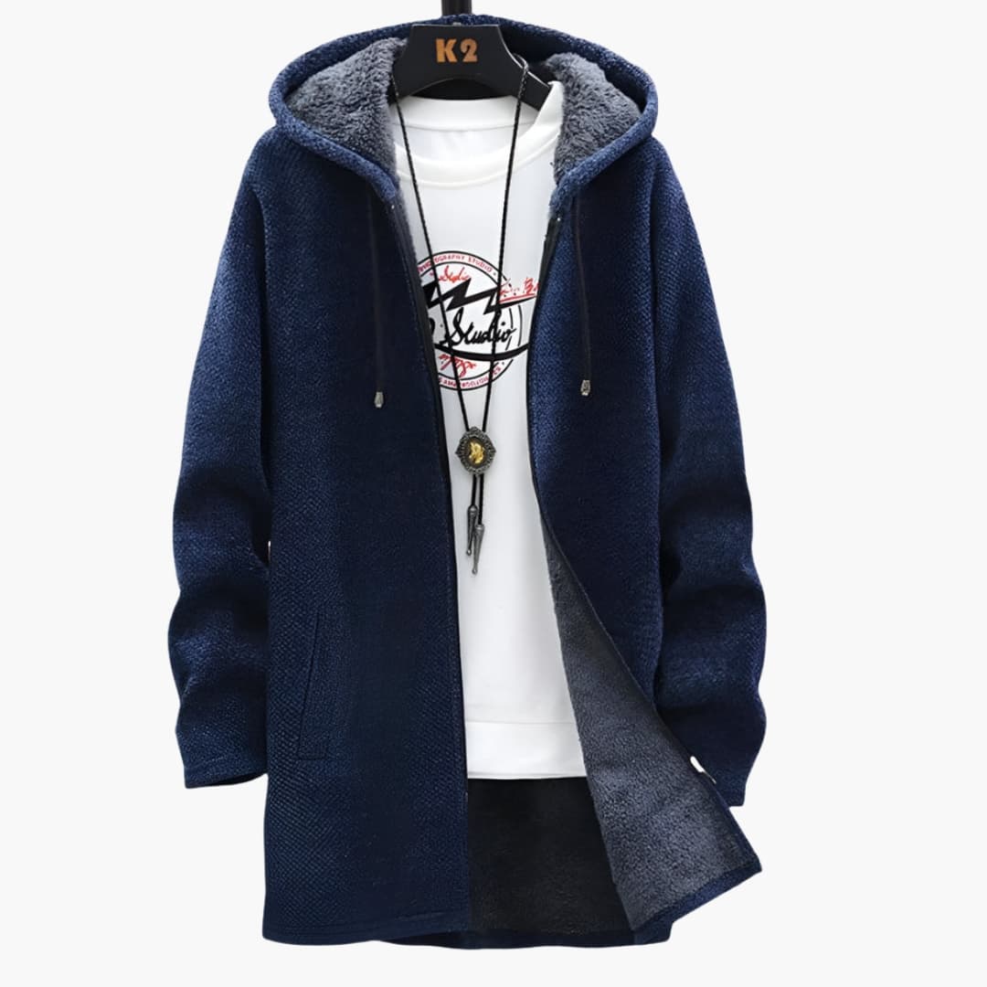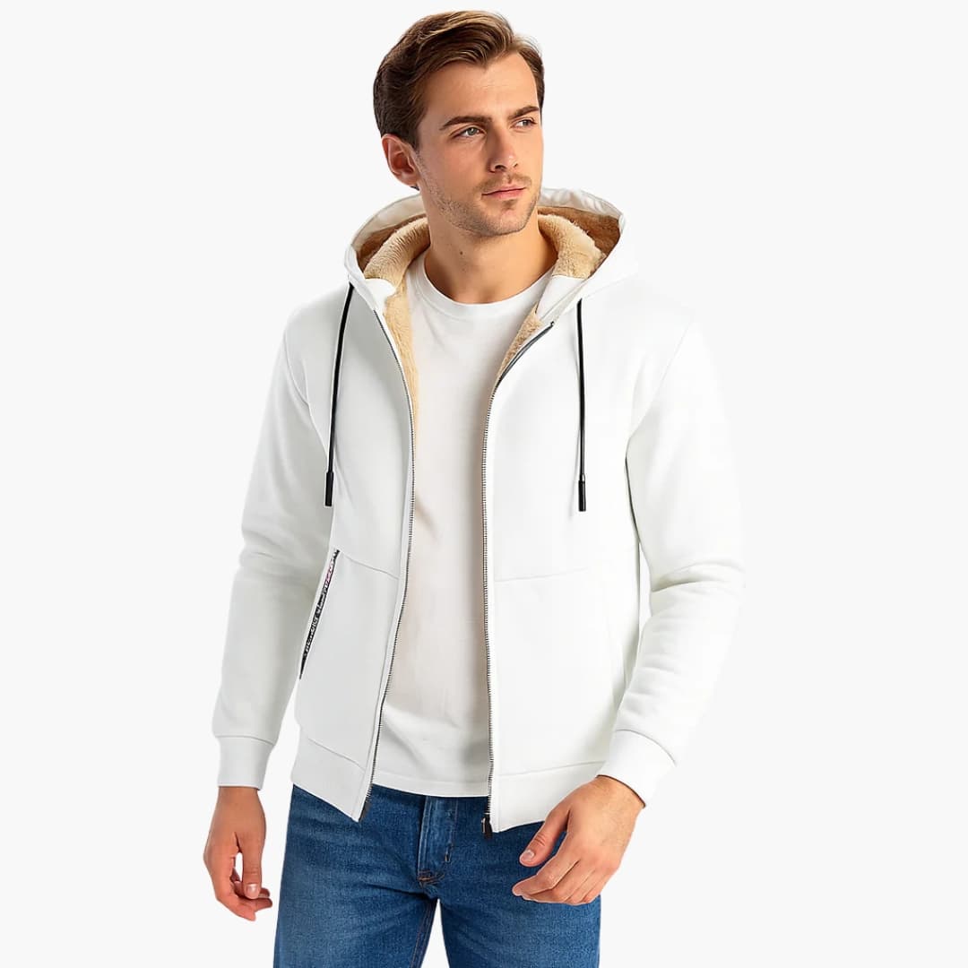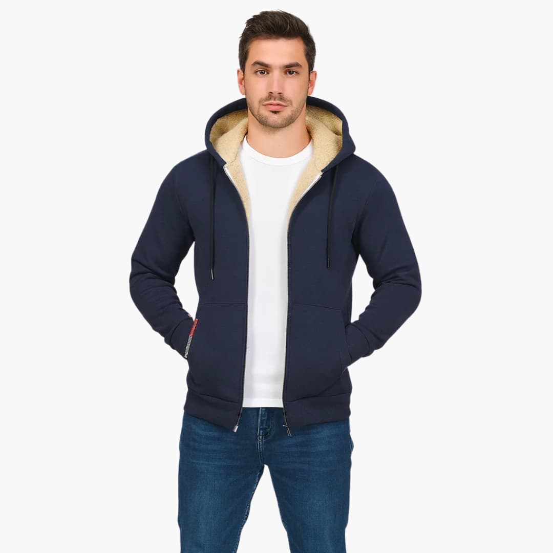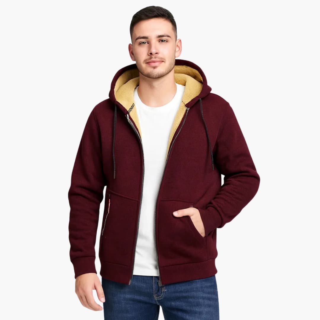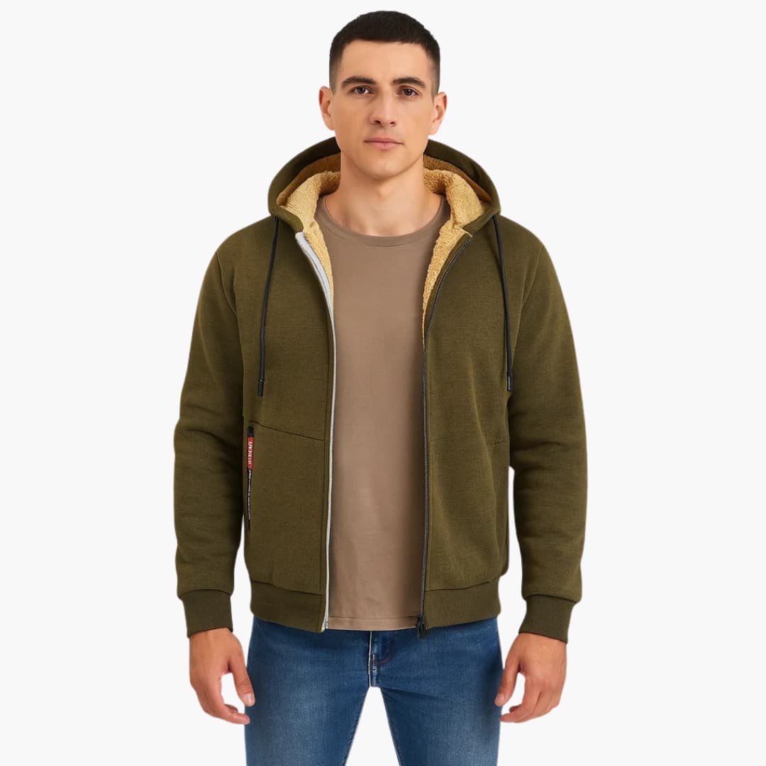 Herrjacka med huva dragkedja och fodrad insida