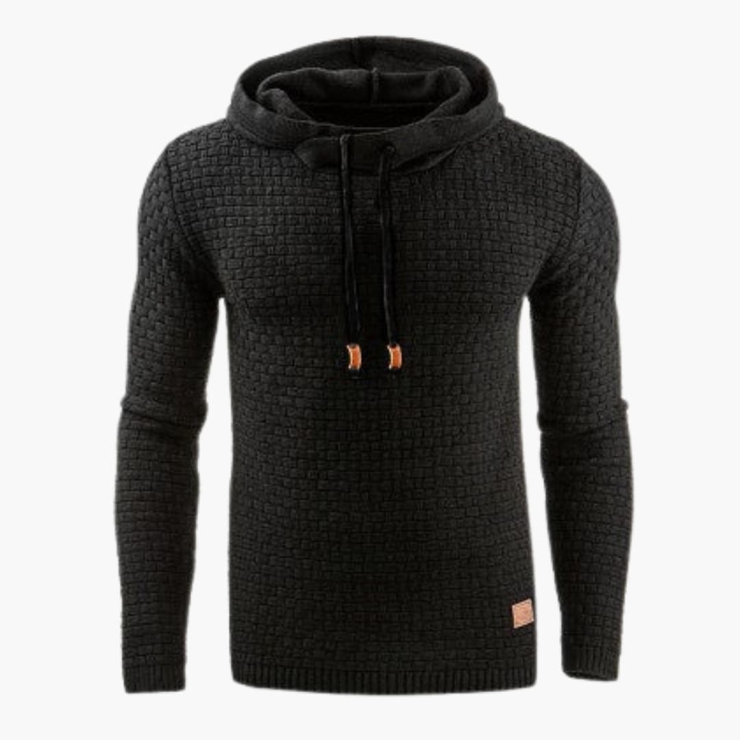 Herrpullover med huva och ribbad nederkant