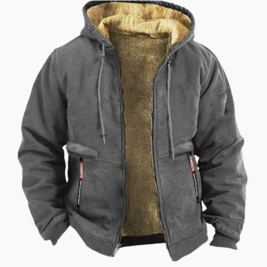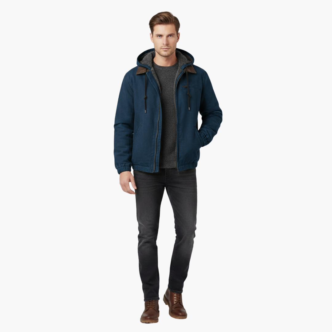 Herrjacka med framdragkedja och justerbar huva